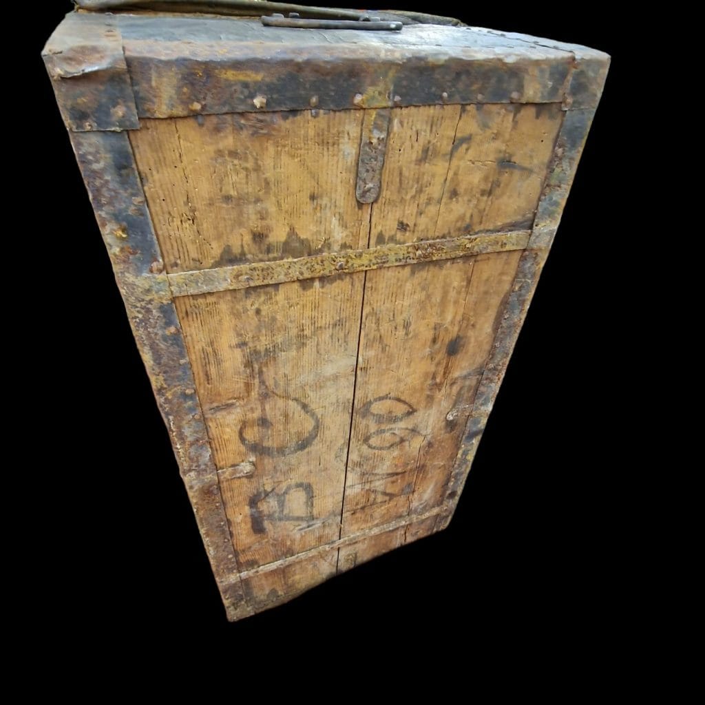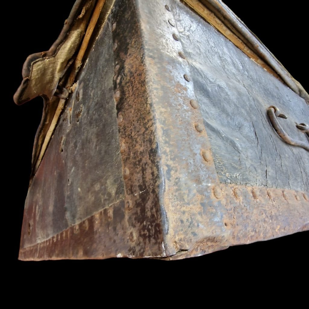 antico splendido baule del settecento in buone condizioni generali in quanto robusto,poichè realizzato in legno rinforzato agli spigoli con ferro ed interamente rivestito in pelle.