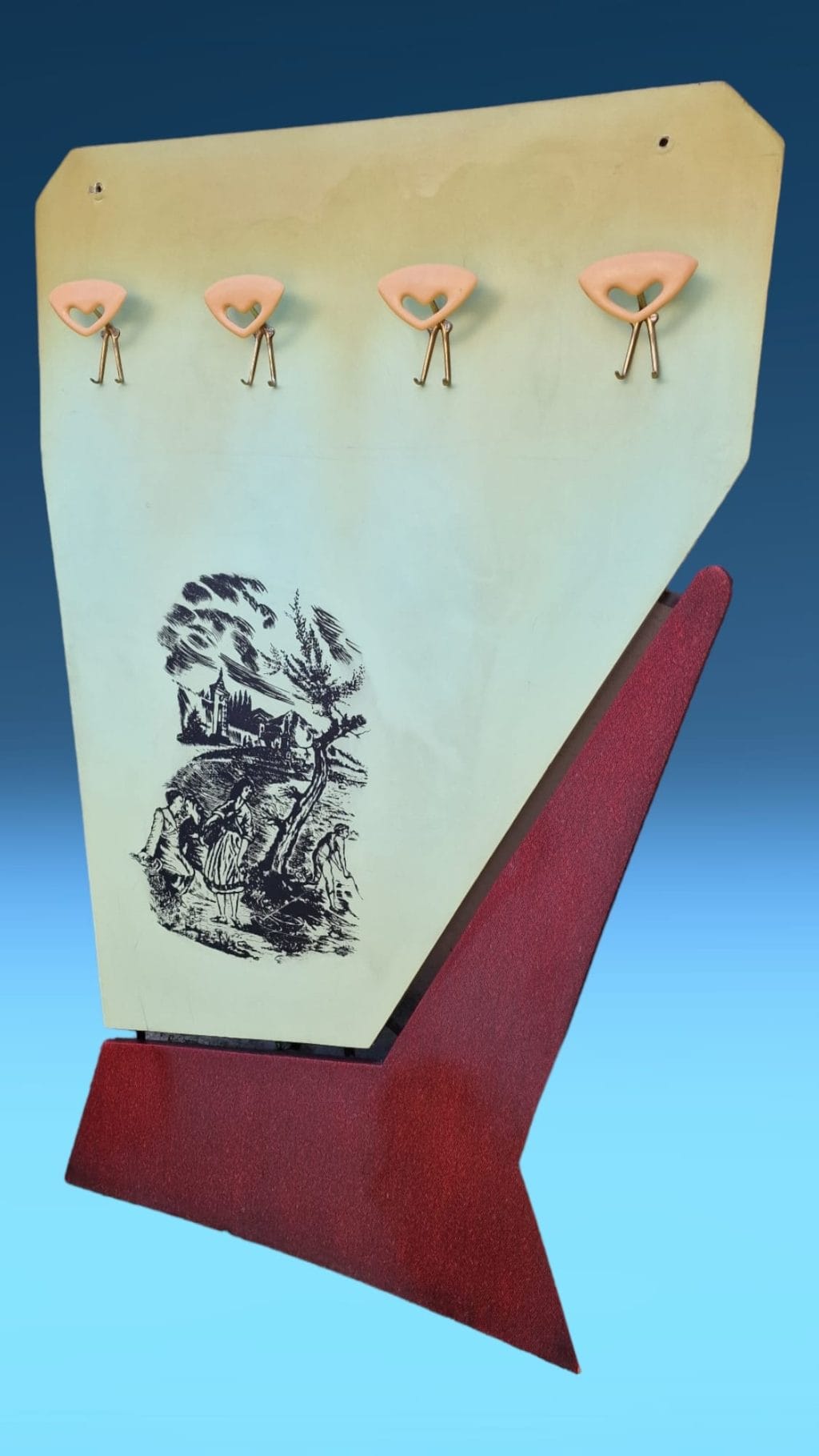 pannello appendiabiti da parete originale degli anni 60 con 4 particolari appendini dal design inconfondibilmente anni 60 in buone condizioni.