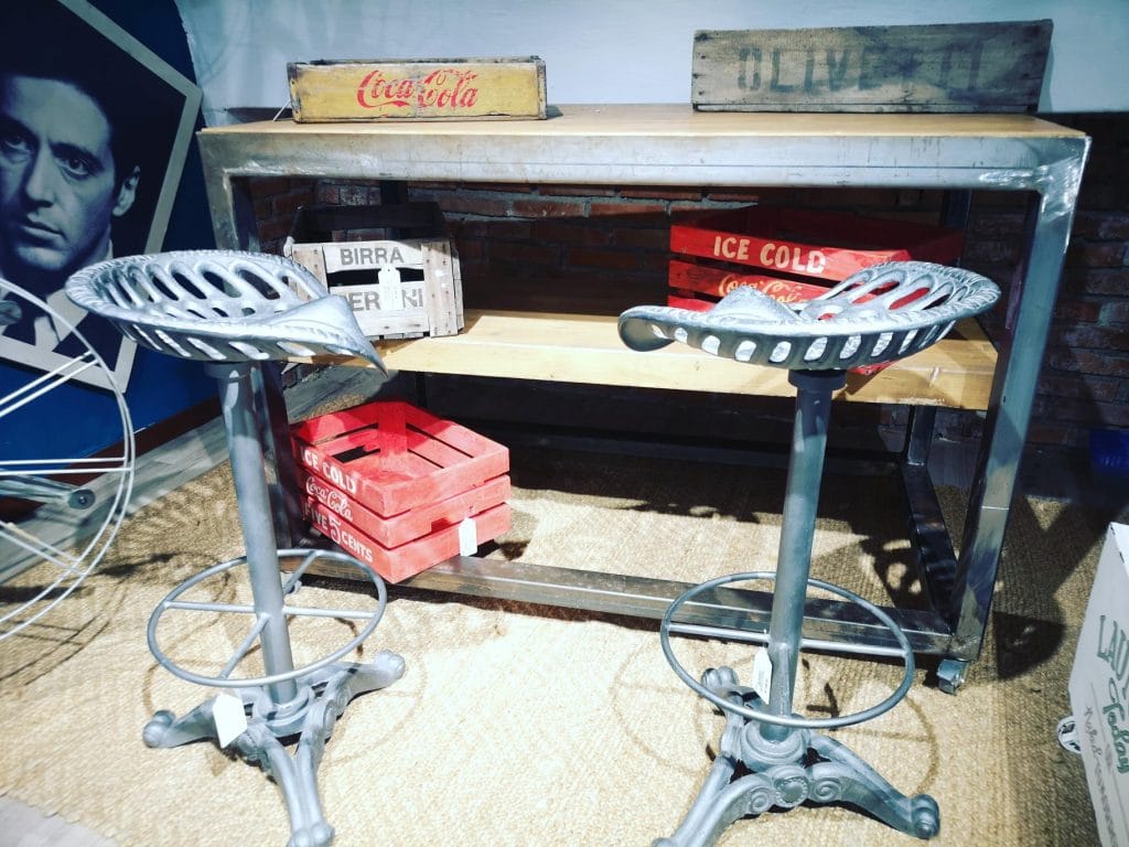 banco industrial in ferro e legno