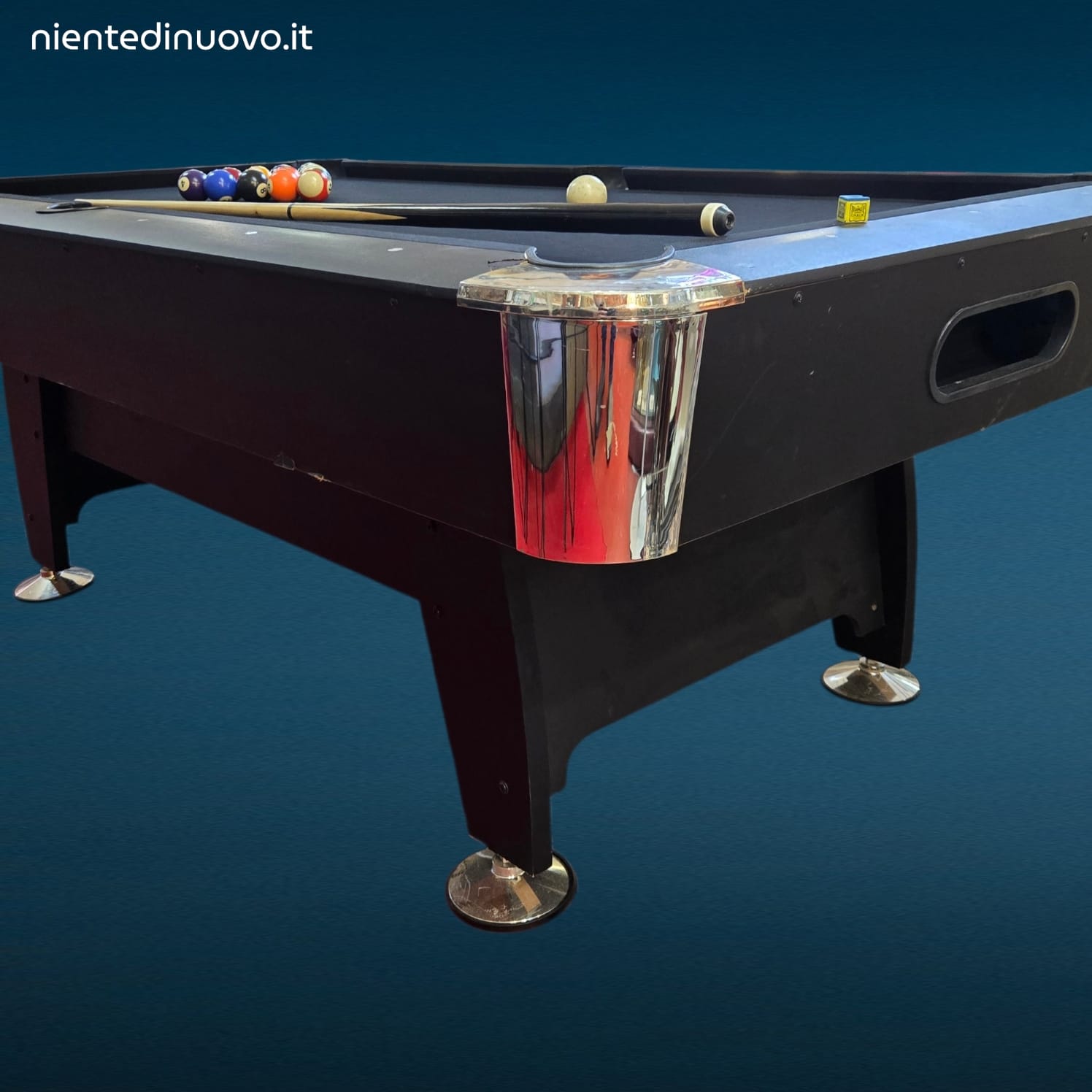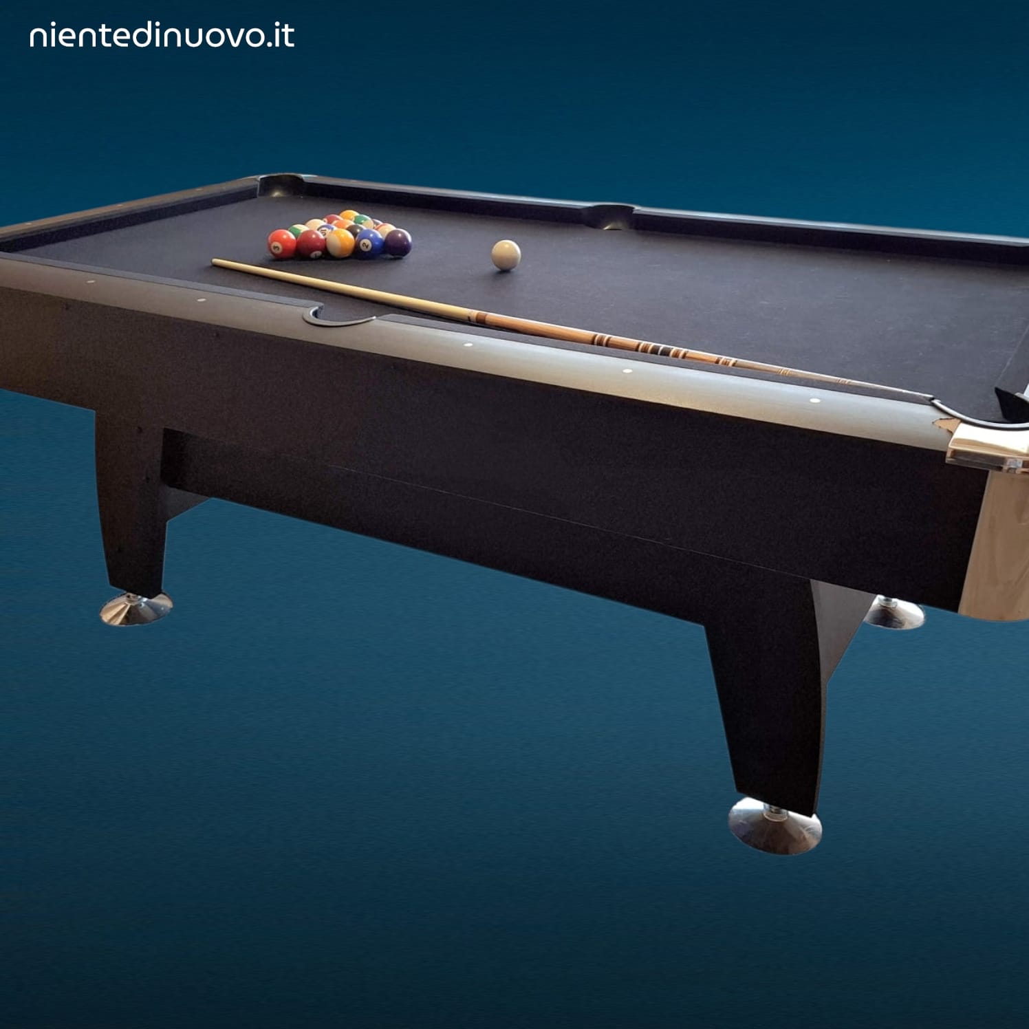 Questo tavolo da gioco è una soluzione pratica per chi cerca un biliardo da carambola di impostazione moderna, pensato per l’uso in ambienti interni. La struttura si presenta in buone condizioni generali e mantiene una presenza sobria, facile da inserire sia in una taverna sia in un appartamento dedicato al tempo libero.