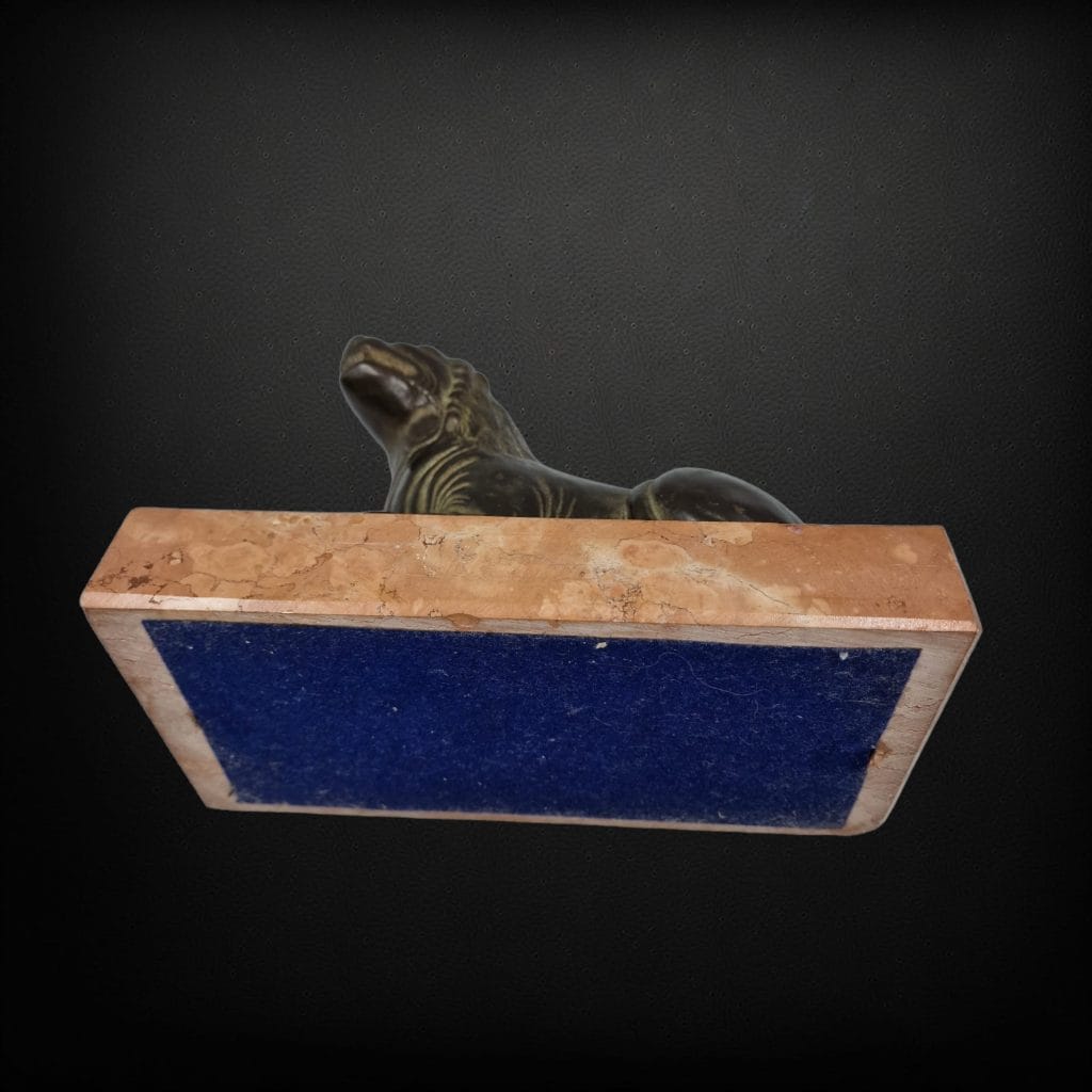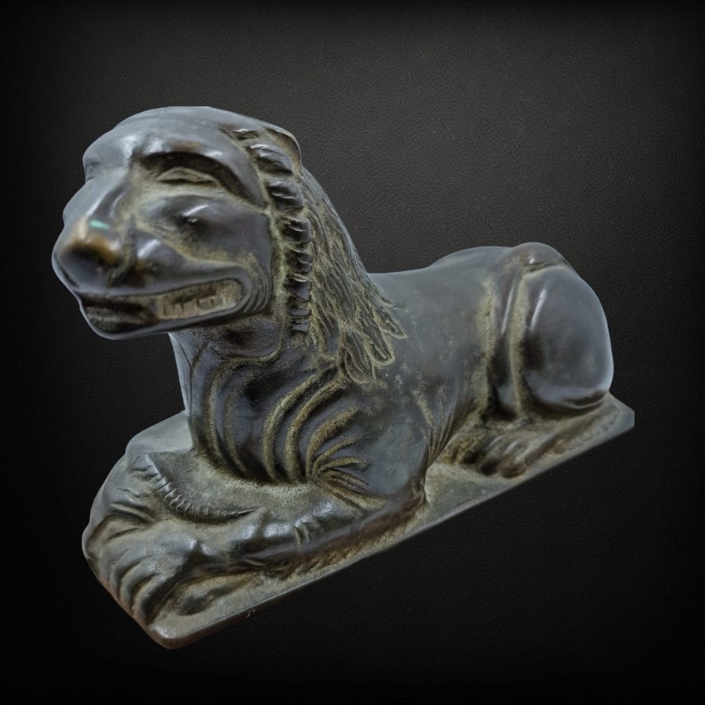 vecchio bronzo su base in marmo rosso di Verona raffigurante un leone