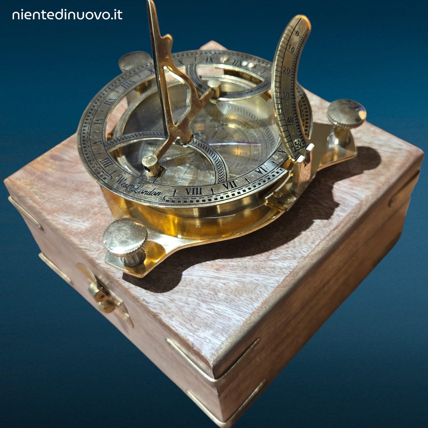 Realizzata in ottone, la bussola presenta un diametro di circa 10 cm, una misura ideale che consente una lettura chiara e una presenza visiva importante. Le incisioni vintage sulla superficie richiamano gli strumenti di navigazione antichi, utilizzati da esploratori e studiosi. Inoltre, la meridiana integrata aggiunge un ulteriore livello di interesse, trasformando l’oggetto in un autentico richiamo alla misurazione del tempo e dell’orientamento tradizionale.
