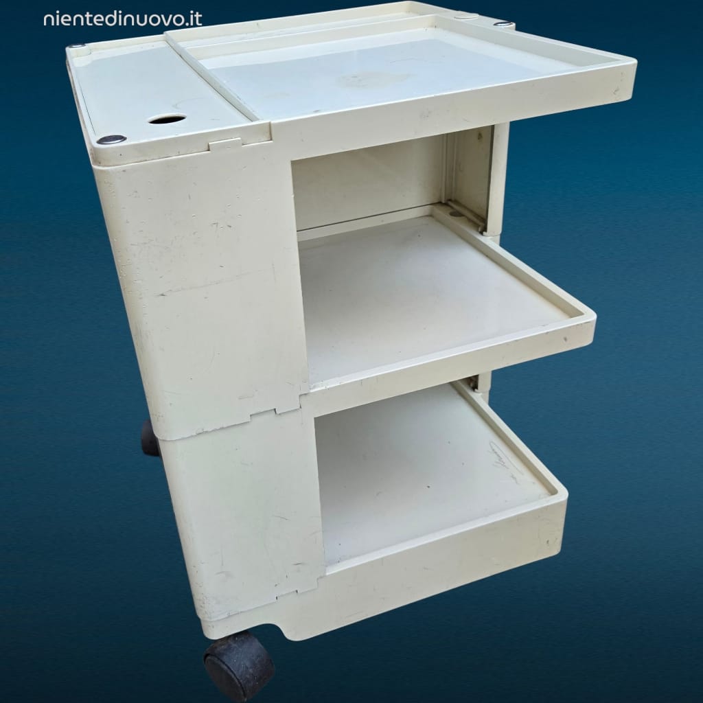 Il carrello Boby Joe Colombo è un’icona assoluta del design italiano anni ’70, progettato dal celebre designer milanese Joe Colombo e prodotto da Bieffeplast Padova. Questo modello in colore bianco, su ruote pivotanti, è la versione compatta e versatile pensata per adattarsi a qualsiasi ambiente, dal living allo studio, fino agli spazi di lavoro creativi.