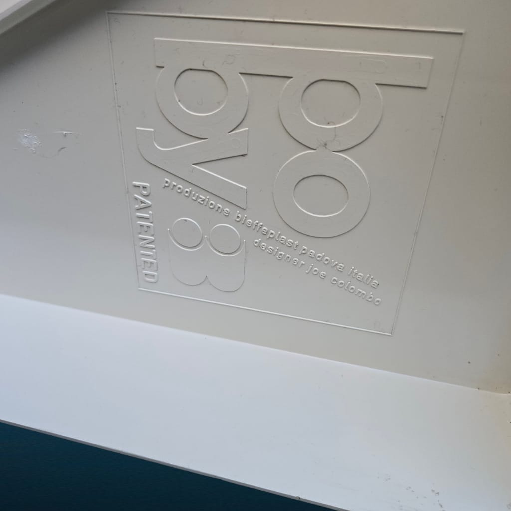 Questo esemplare, originale e firmato, è proposto in buone condizioni generali, senza rotture, con segni normali del tempo che non compromettono la funzionalità né l’estetica. Il colore bianco conserva ancora brillantezza e omogeneità, e le ruote scorrono perfettamente, permettendo di spostare il carrello con estrema facilità.