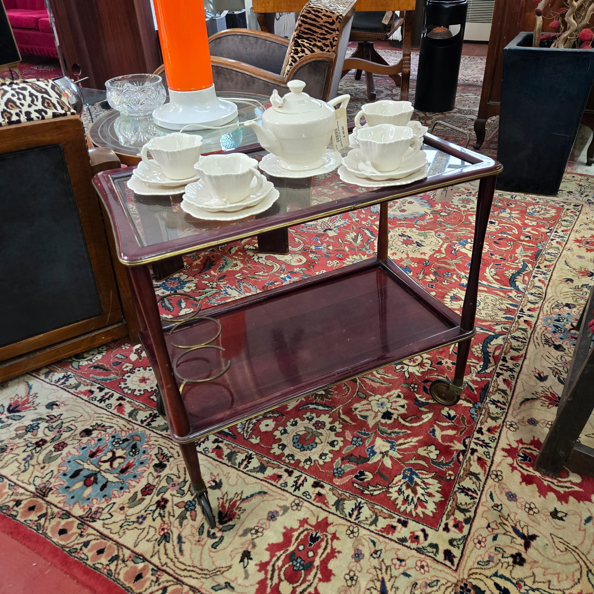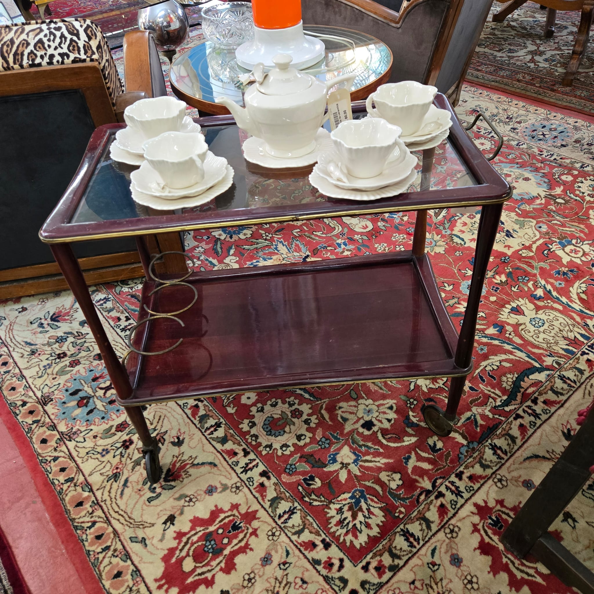 Questo carrello portavivande anni ’50 è un raffinato esempio di design vintage italiano, con uno stile elegante e funzionale tipico del dopoguerra. L’oggetto, in buone condizioni generali, è attribuibile al celebre designer Cesare Lacca, noto per le sue creazioni leggere, dinamiche e sempre armoniose. Un pezzo originale, perfetto per chi cerca un arredo dal sapore autentico e dallo stile inconfondibile.