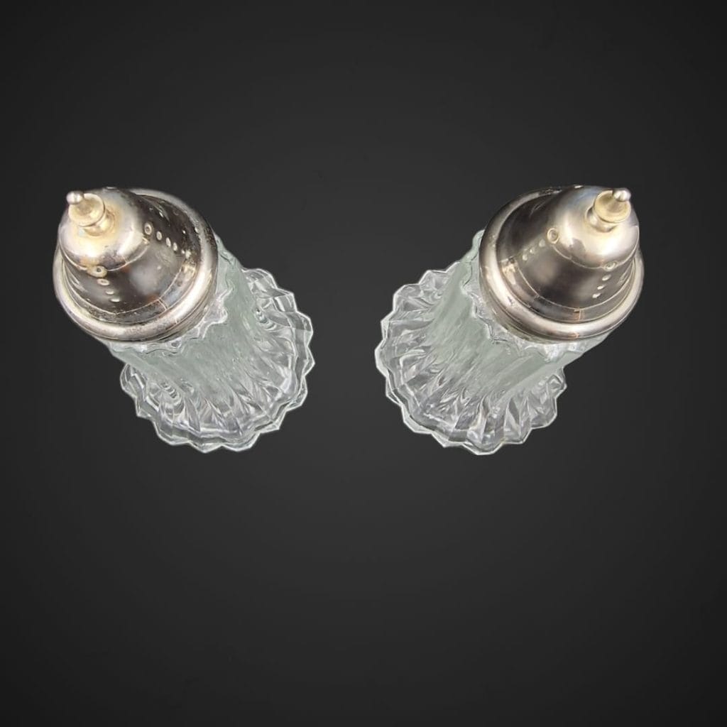 bella coppia di vecchi salini in vetro inglesi nel classico stile anni 30 in ottime condizioni.