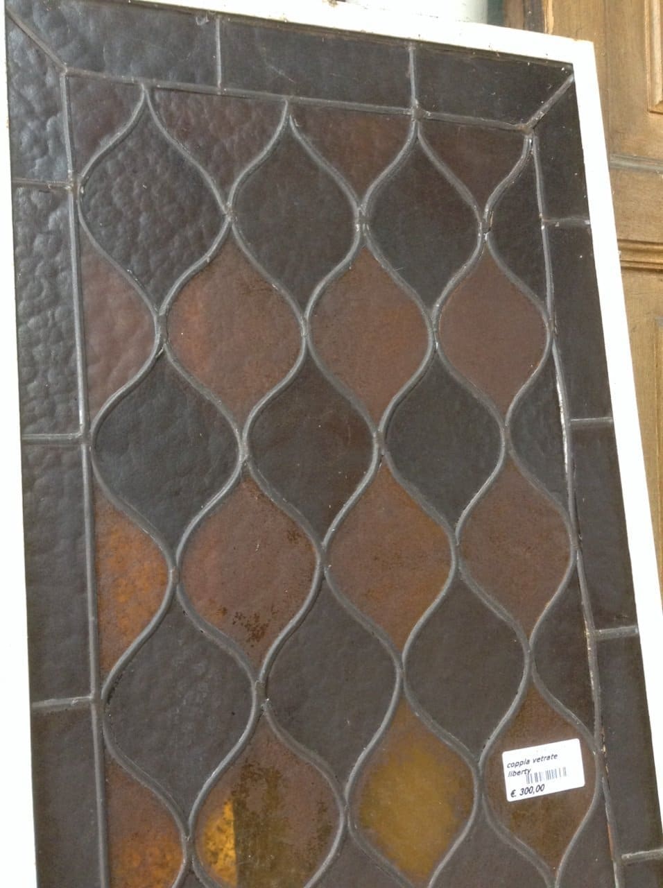 Coppia vetrate Liberty con vetri piombati: fascino decorativo d’epoca in cornice di ferro
