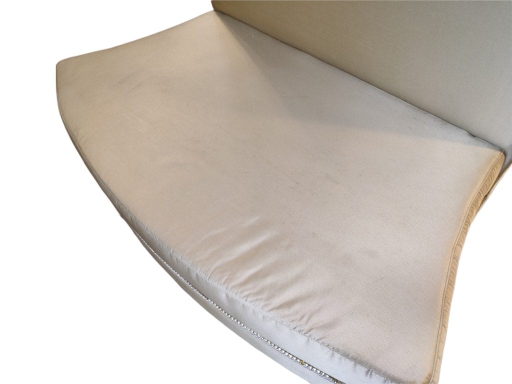Divanetto a schienale alto da ingresso con scritta PP in brillantini e bordatura in strass sulla seduta.