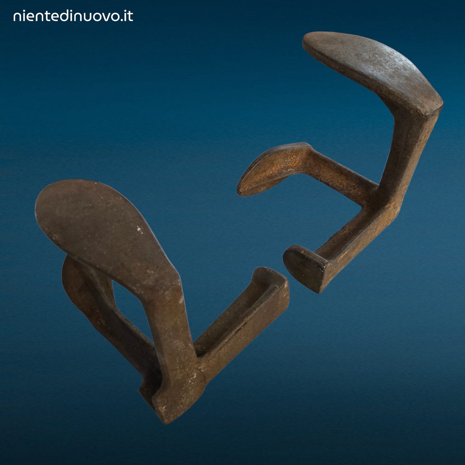 Incudine trepiede da calzolaio in ferro, disponibile in due esemplari originali d’epoca. Strumenti da lavoro tradizionali destinati alla lavorazione e riparazione delle calzature. Una con superficie più ampia per scarpe da uomo, l’altra più sottile per scarpe da donna. Stato di conservazione buono, con normali segni d’uso. Vendita separata.