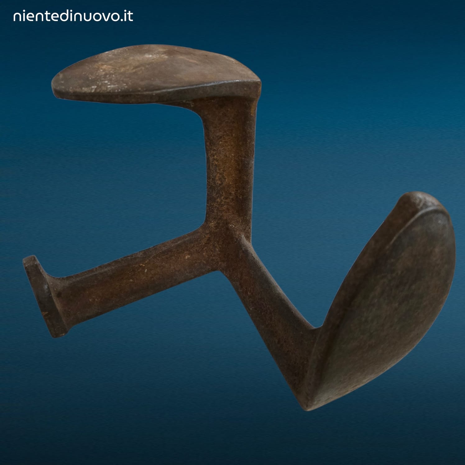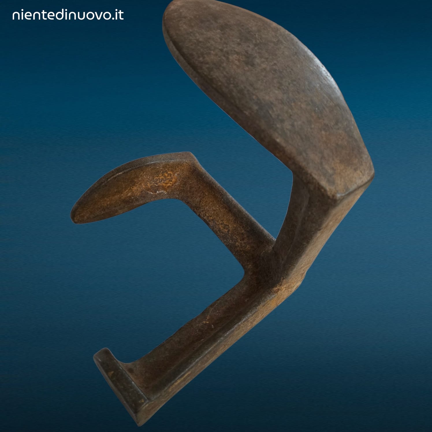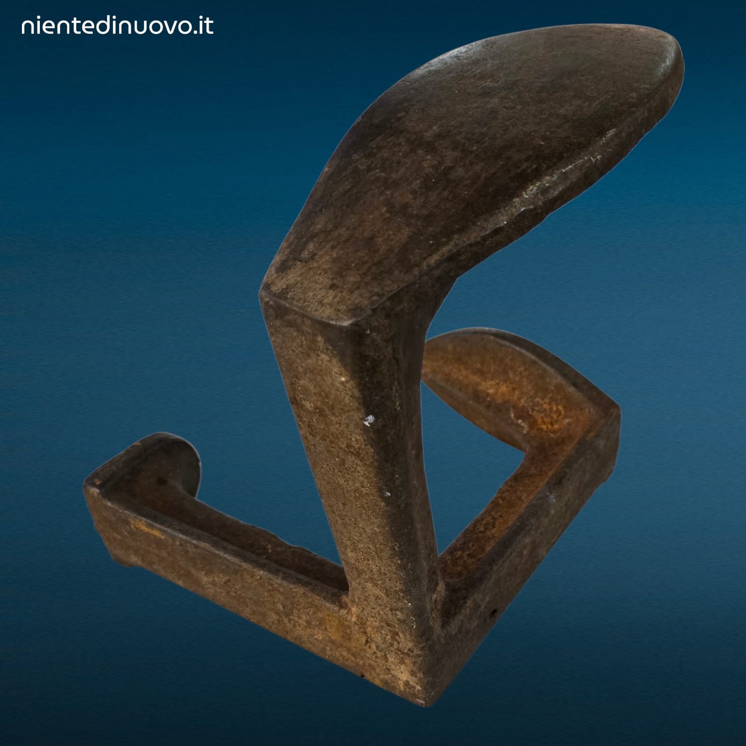 La incudine trepiede da calzolaio è uno strumento tipico delle botteghe artigiane tradizionali. Veniva utilizzata per modellare, ribattere e rifinire le calzature durante le fasi di lavorazione. Questo oggetto rappresenta un elemento autentico del mestiere del calzolaio.
