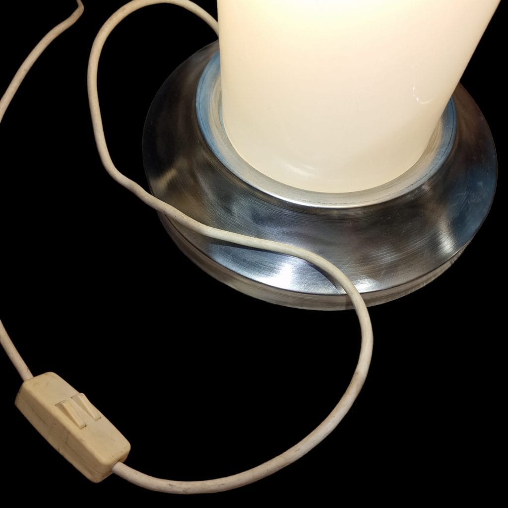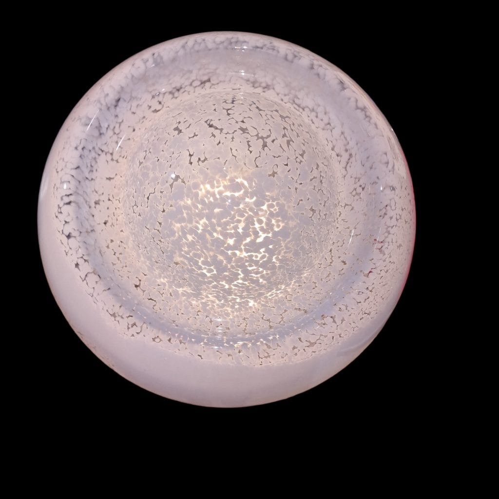 Lampada da appoggio vintage, interamente in vetro con impianto a doppia accensione che consente la sola accendione del fusto o la completa accensione del pregiato cappello superiore.funzionante ed in condizioni…