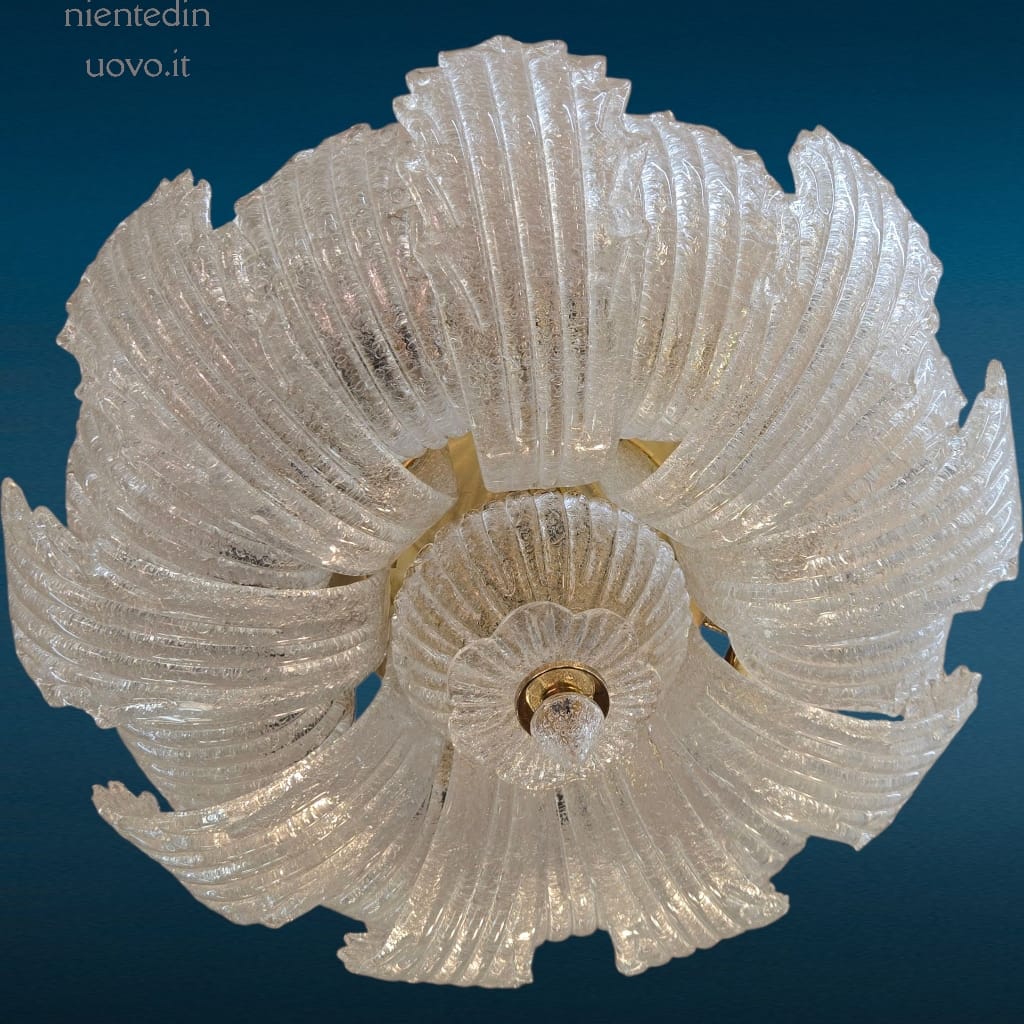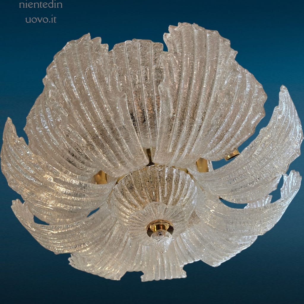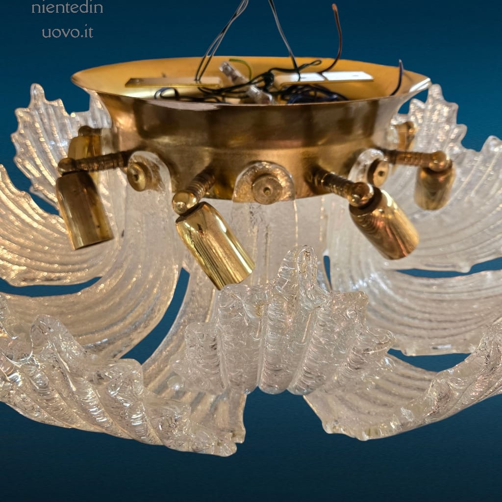 Lampadario vintage La Murrina anni ’70 con 11 luci E14 e foglie in vetro di Murano. In ottime condizioni estetiche e perfettamente funzionante.