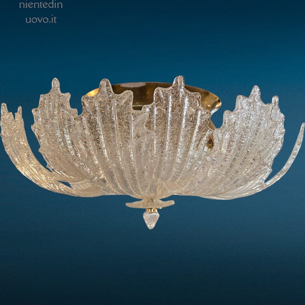 La struttura portante accoglie 11 portalampade con attacco E14, capaci di offrire un’illuminazione diffusa e calda. Le foglie in vetro soffiato, perfettamente conservate, donano leggerezza e brillantezza al corpo centrale, creando suggestivi giochi di luce. Ogni elemento è stato lavorato a mano, rendendo questo lampadario non solo un oggetto d’arredo, ma una vera opera d’arte.