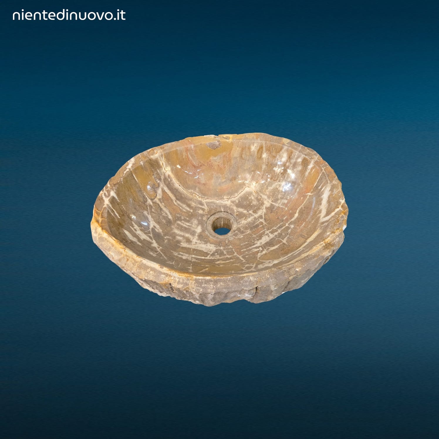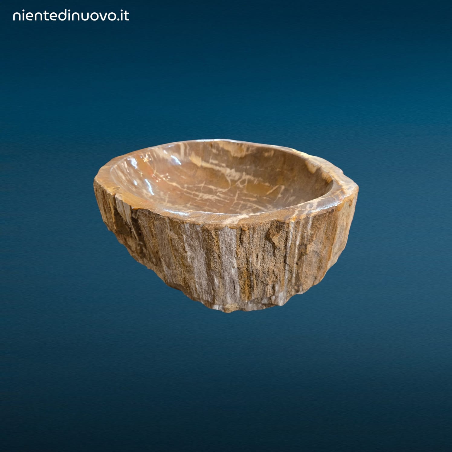 Ogni esemplare è unico: la pietrificazione del legno avviene naturalmente nel corso di milioni di anni, trasformando le venature e le sfumature originali in una solida superficie minerale, resistente e visivamente affascinante. Grazie alla forma organica e irregolare, tipica di questo materiale, il lavandino si distingue per autenticità e carattere, diventando un vero pezzo da collezione.