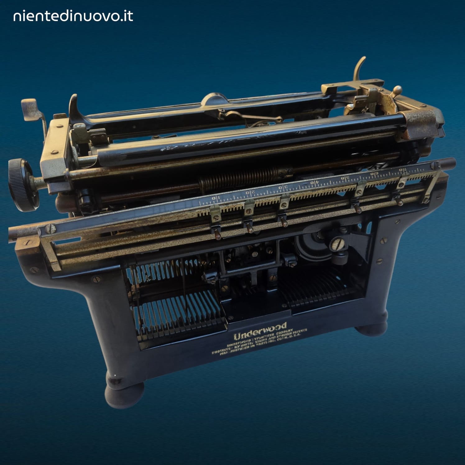 Tuttavia, essendo rimasta ferma per lungo tempo, può necessitare di una pulizia generale dei meccanismi. Questo intervento ordinario consente di ottimizzare la scorrevolezza dei tasti e delle leve. La macchina da scrivere Underwood inizio 900 mantiene comunque integrità e autenticità.