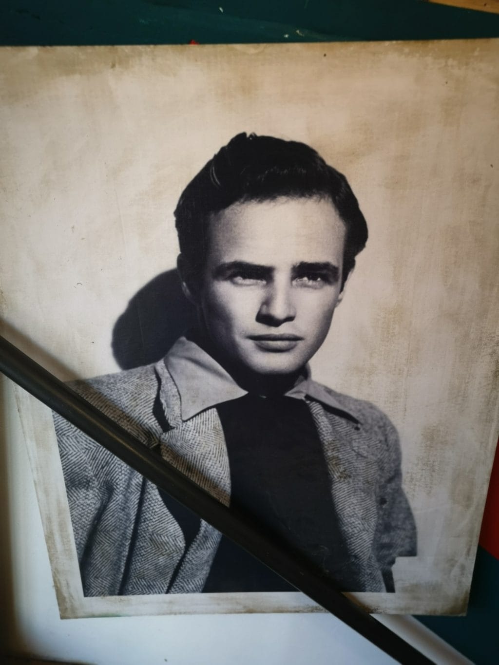 vari pannelli di grandi Star del cinema in bianco e nero con segni del tempo su pannello in cartone. indicare in fase d’ordine quale pannello ed attore si desidera.Pezzi unici.