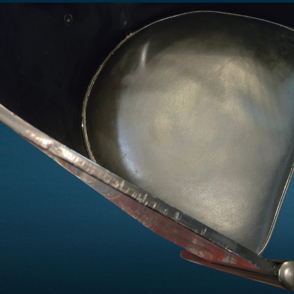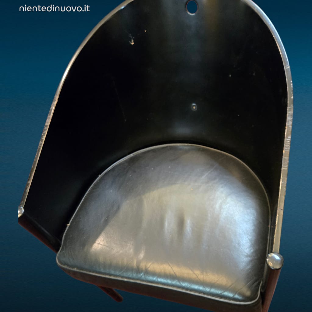Segnaliamo, come indicato, la presenza di segni di usura sul bordo superiore della scocca, dovuti allo sfregamento contro i tavoli, assolutamente compatibili con l’epoca e l’uso. Questi dettagli non compromettono la bellezza né l’integrità della poltroncina, ma ne valorizzano l’autenticità e il vissuto.