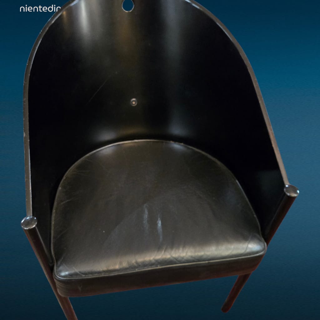 Caratterizzata da una linea elegante e decisa, la poltroncina Costes Driade unisce estetica e funzionalità in modo armonioso. La struttura tubolare in metallo verniciato nero sostiene una scocca curva in legno, mentre la seduta è rivestita in pelle di alta qualità. Le condizioni delle sedute sono perfette, così come le strutture, a conferma della qualità dei materiali utilizzati e della resistenza nel tempo.