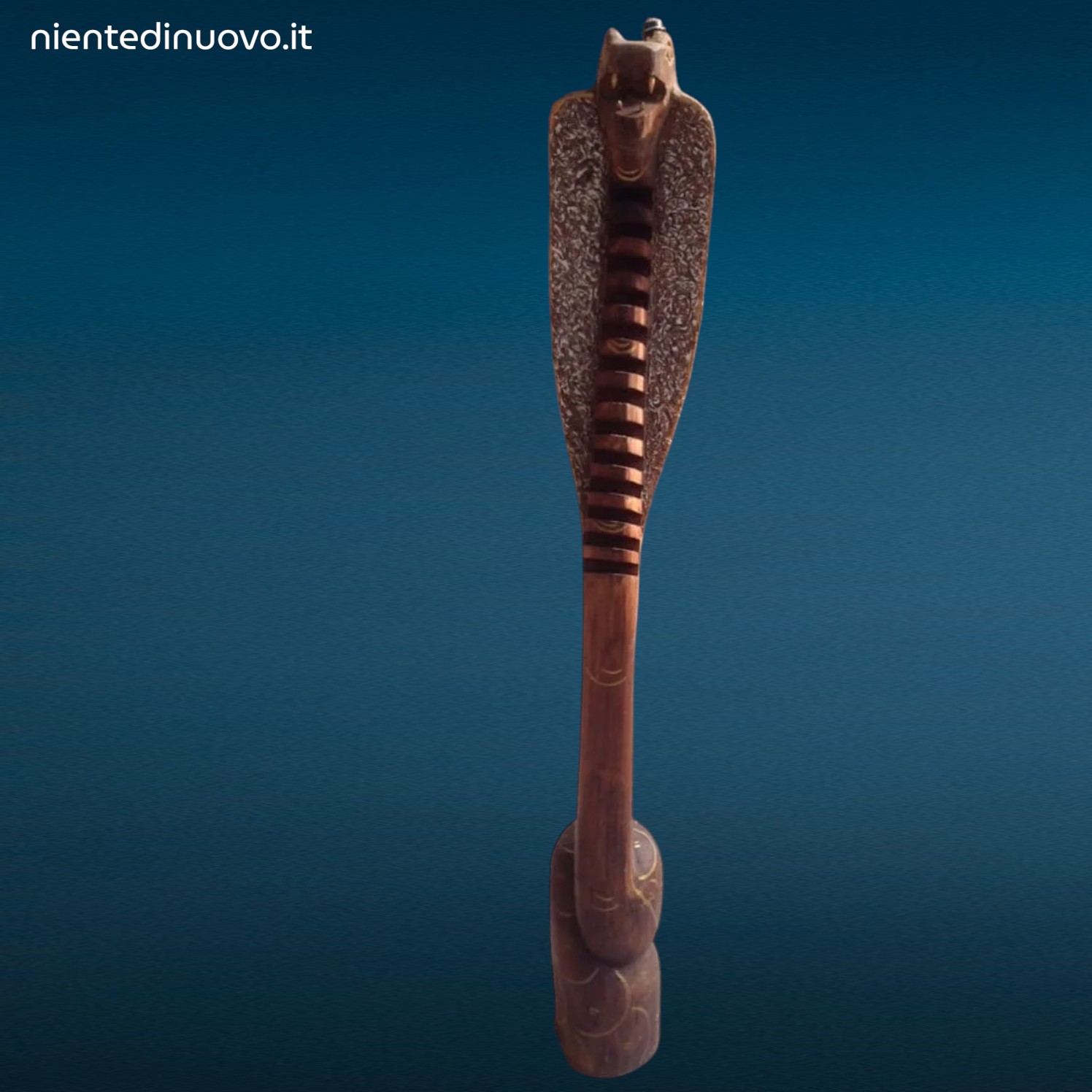 La qualità del legno lavorato a mano, unita al design insolito, rende questo oggetto un’ottima scelta per collezionisti, amanti dell’arredamento etnico o per chi cerca un complemento d’arredo fuori dagli schemi. Ogni dettaglio, dalla testa del cobra alla coda che si avvolge alla base, contribuisce a creare un pezzo unico e scenografico.
