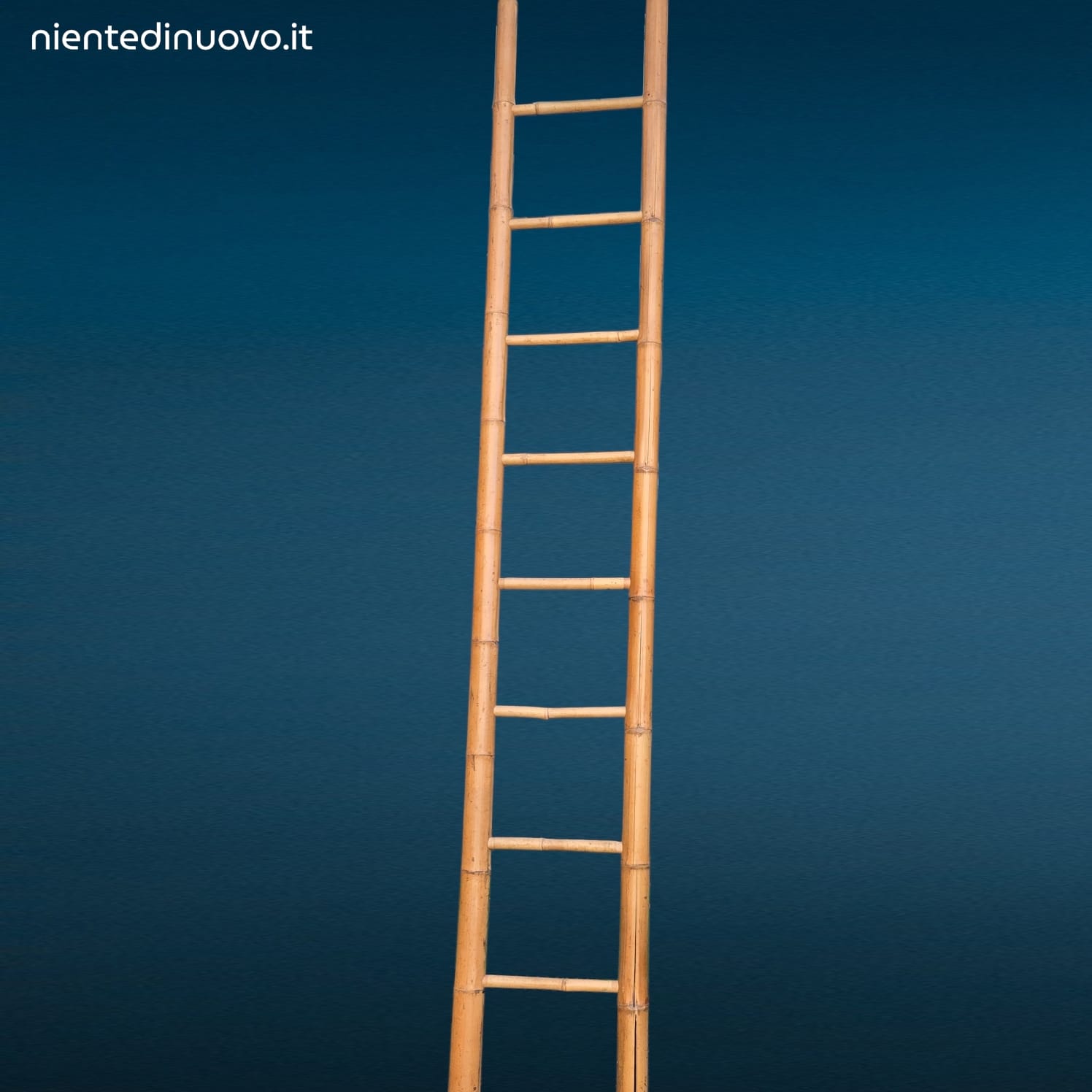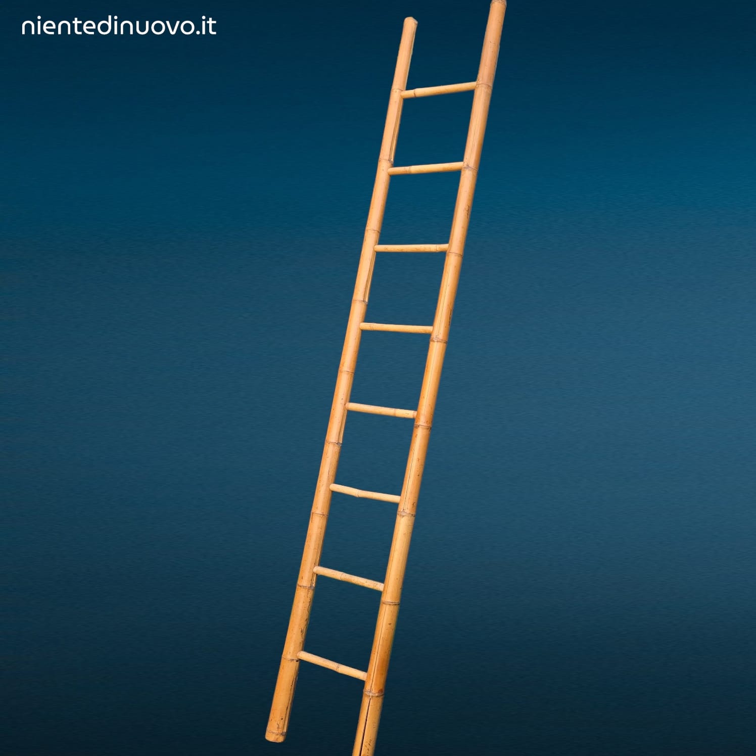 Scala in bambù per interni alta 250 cm, ideale come portasalviette o elemento decorativo. Presenta naturali spaccature del materiale.