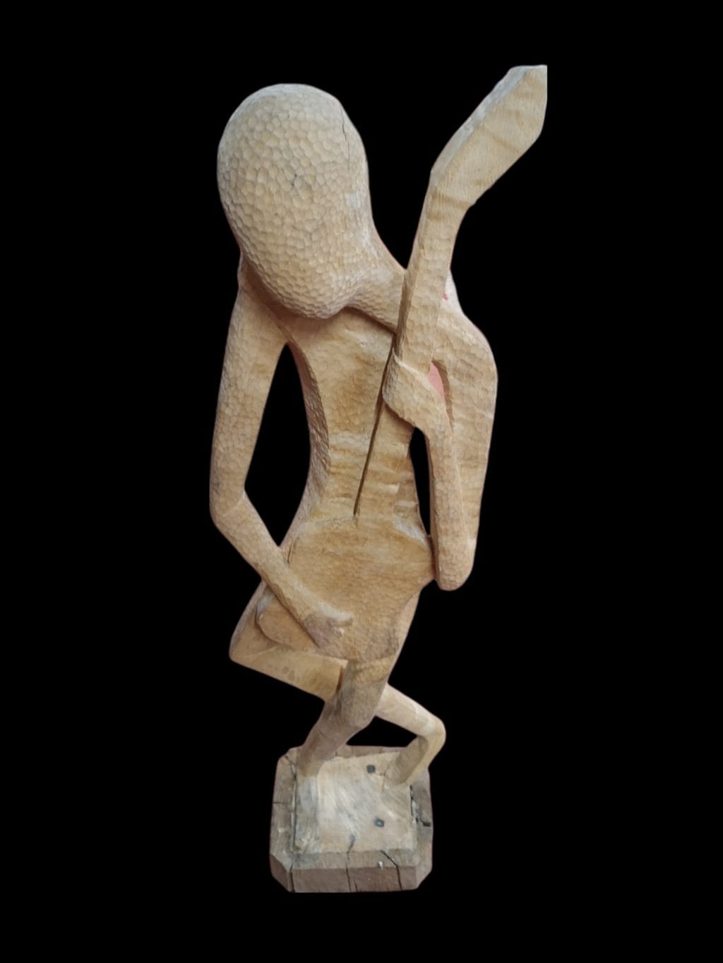 scultura di chitarrista interamente intagliata nel legno. Il chitarrista ,senza un volto definito è immerso nella sua musica e molto bravo è stato lo scultore a saperne esprimere i movimenti…