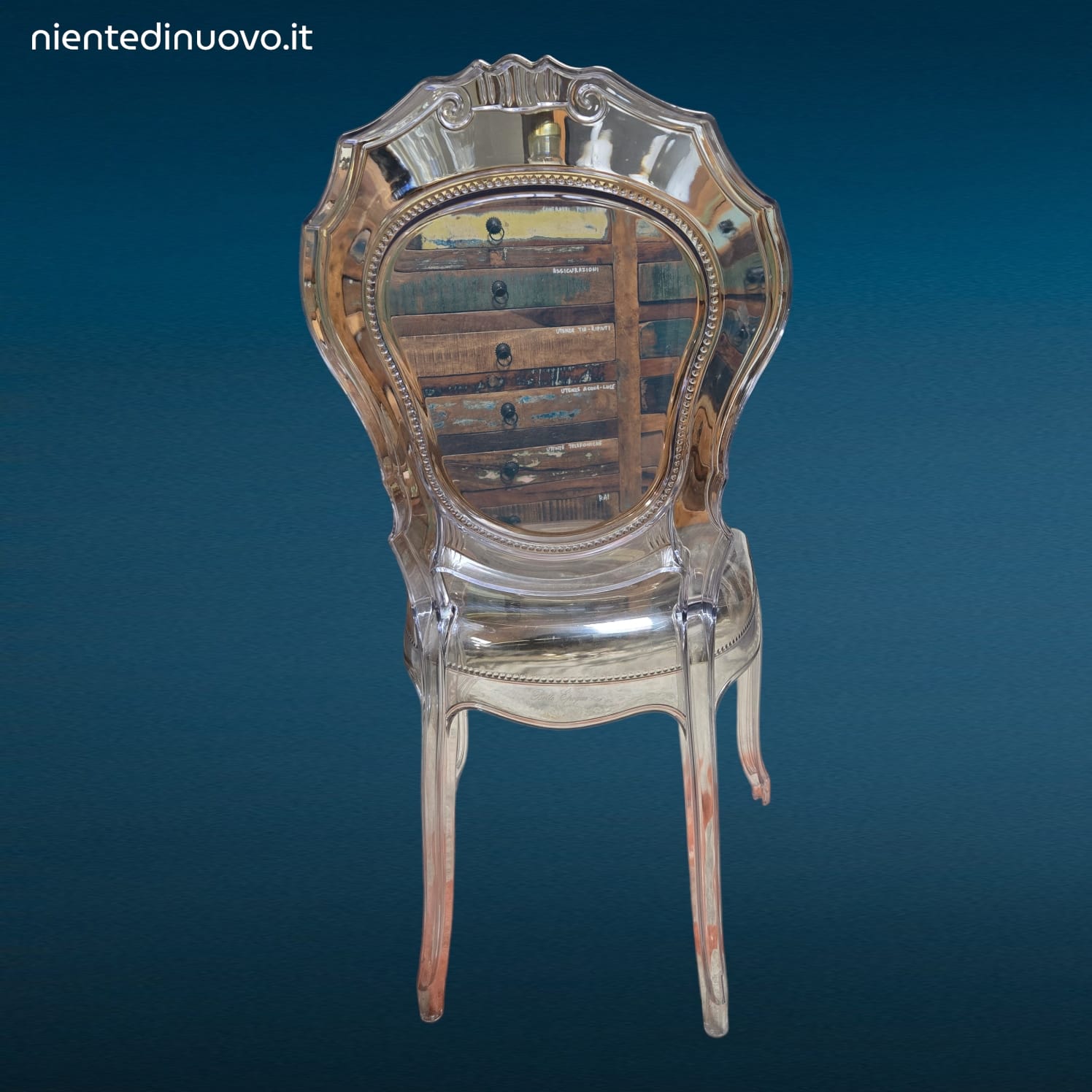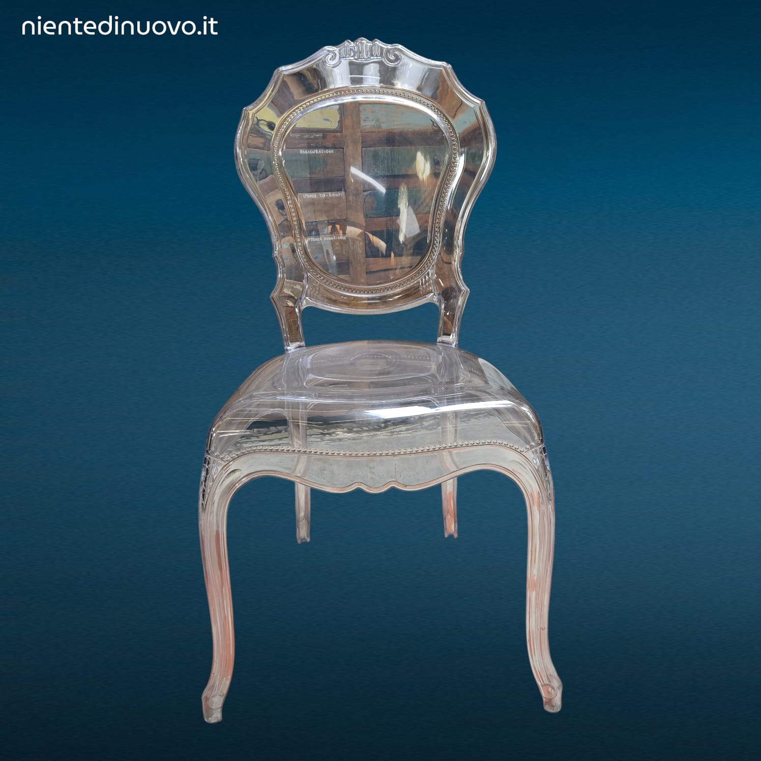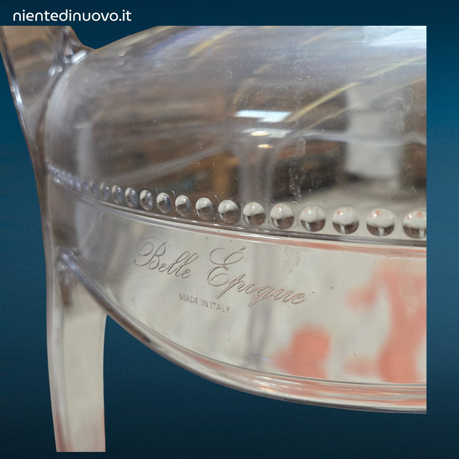 Sedia italiana trasparente in stile Belle Époque moderno, in policarbonato. Usata, con lievi segni, ma in ottimo stato estetico e strutturale.