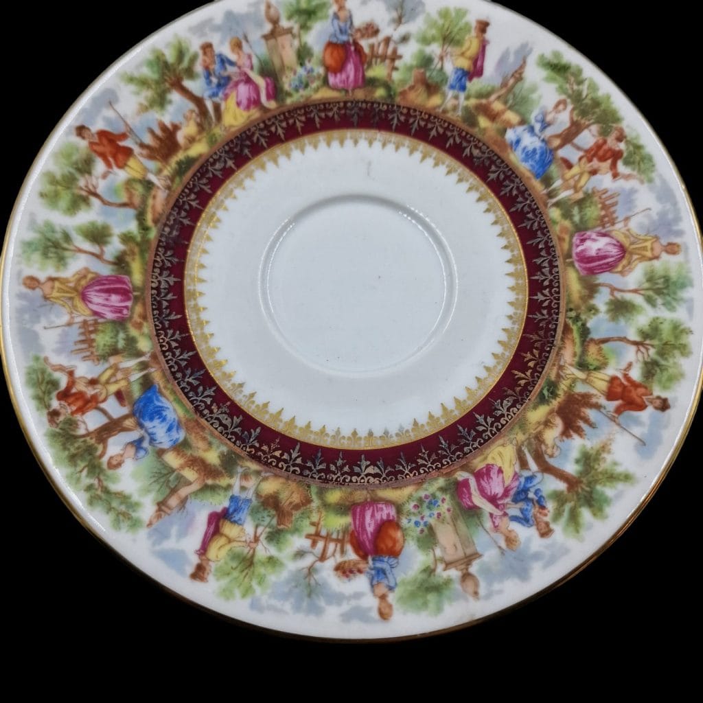 grazioso ed elegante servizio da the in porcellana decorata viennese con bordature in oro zecchino, in perfette condizioni .