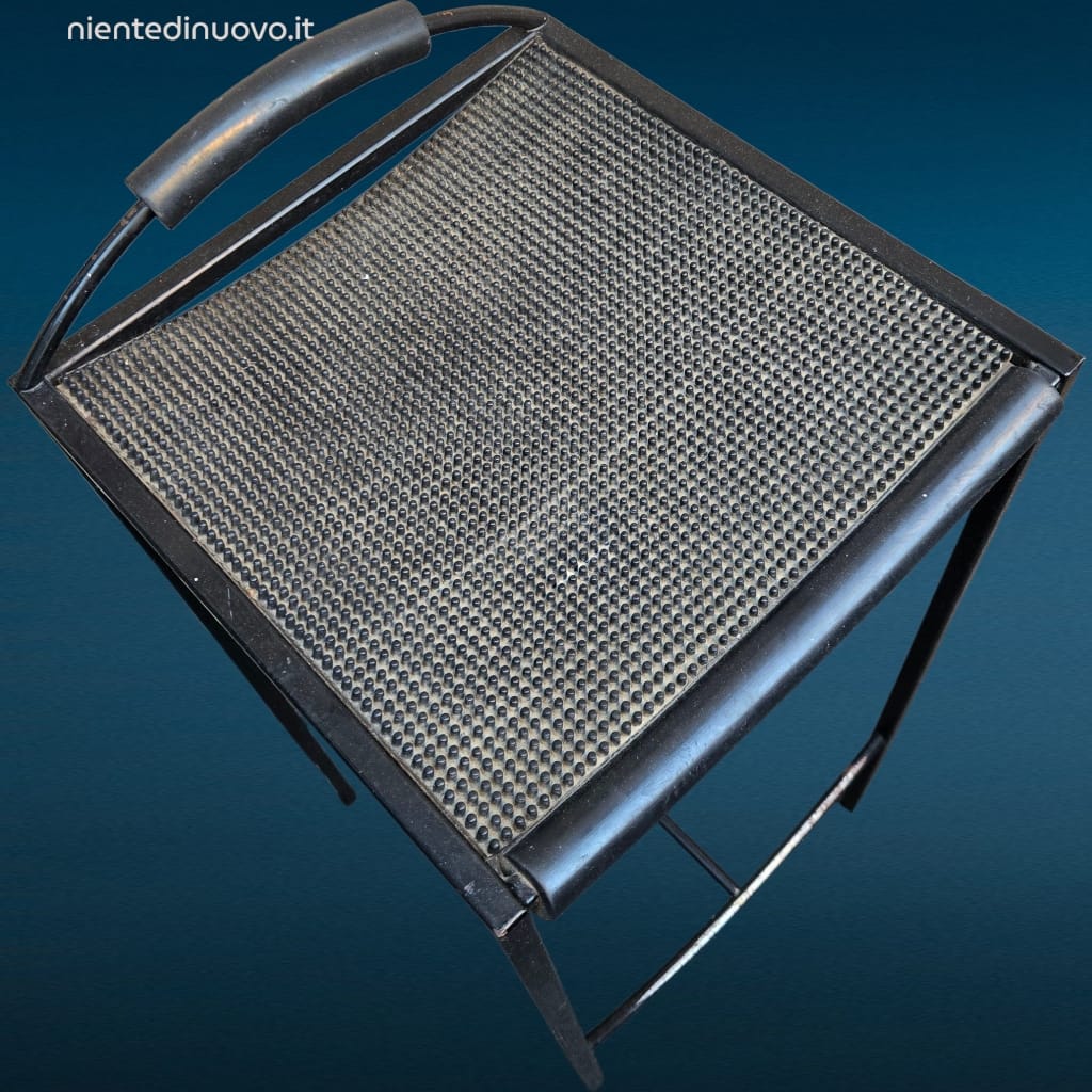 La struttura è solida, leggera e visivamente pulita. Il metallo, modellato in forme lineari e asciutte, comunica una sensazione di rigore industriale senza risultare freddo. Questo oggetto è molto più di una semplice seduta: è un pezzo d’arredo ideale per ambienti dallo stile contemporaneo, loft urban o spazi creativi dove si voglia inserire un elemento di design autentico e funzionale. Perfetto anche come sgabello da cucina o da appoggio in un ingresso moderno.
