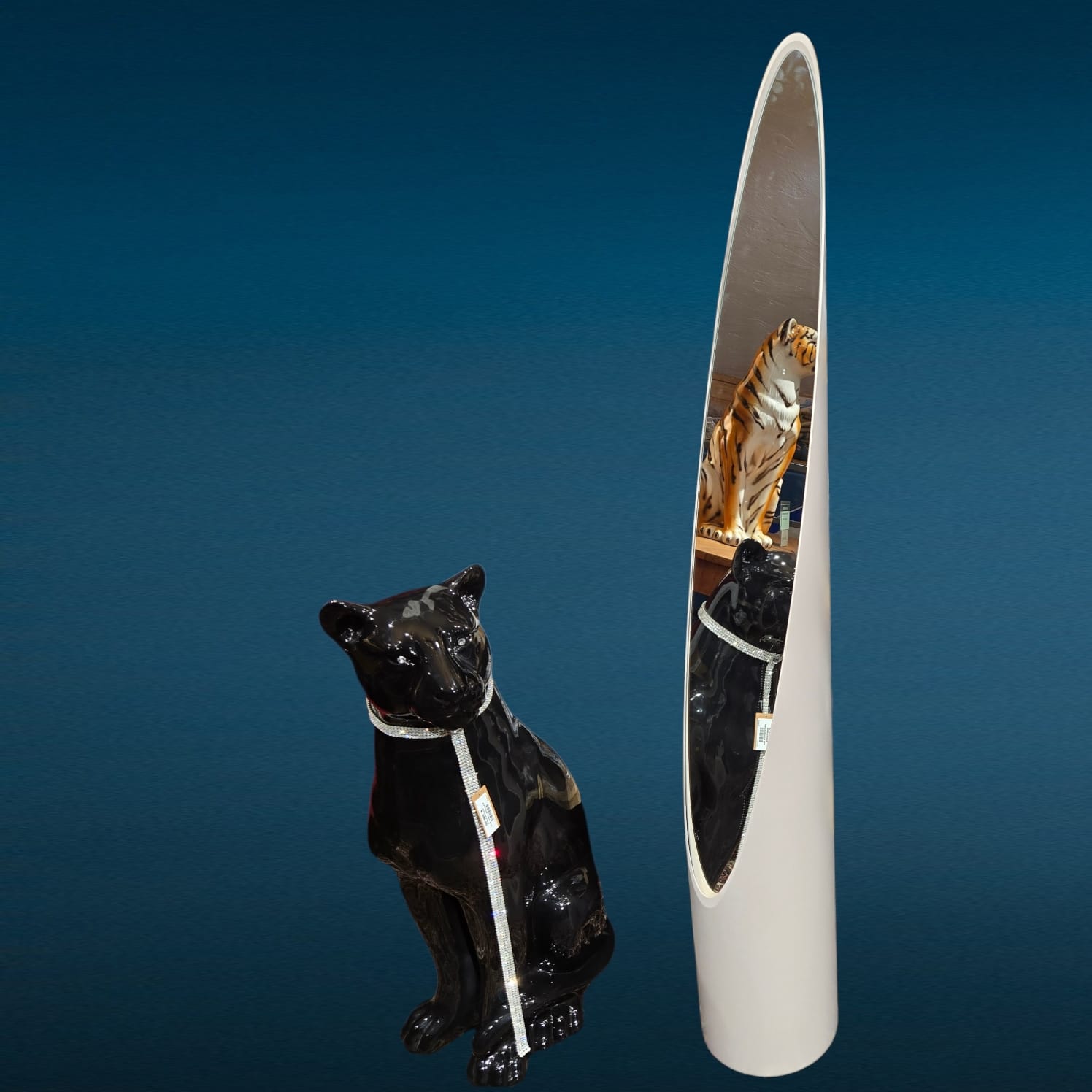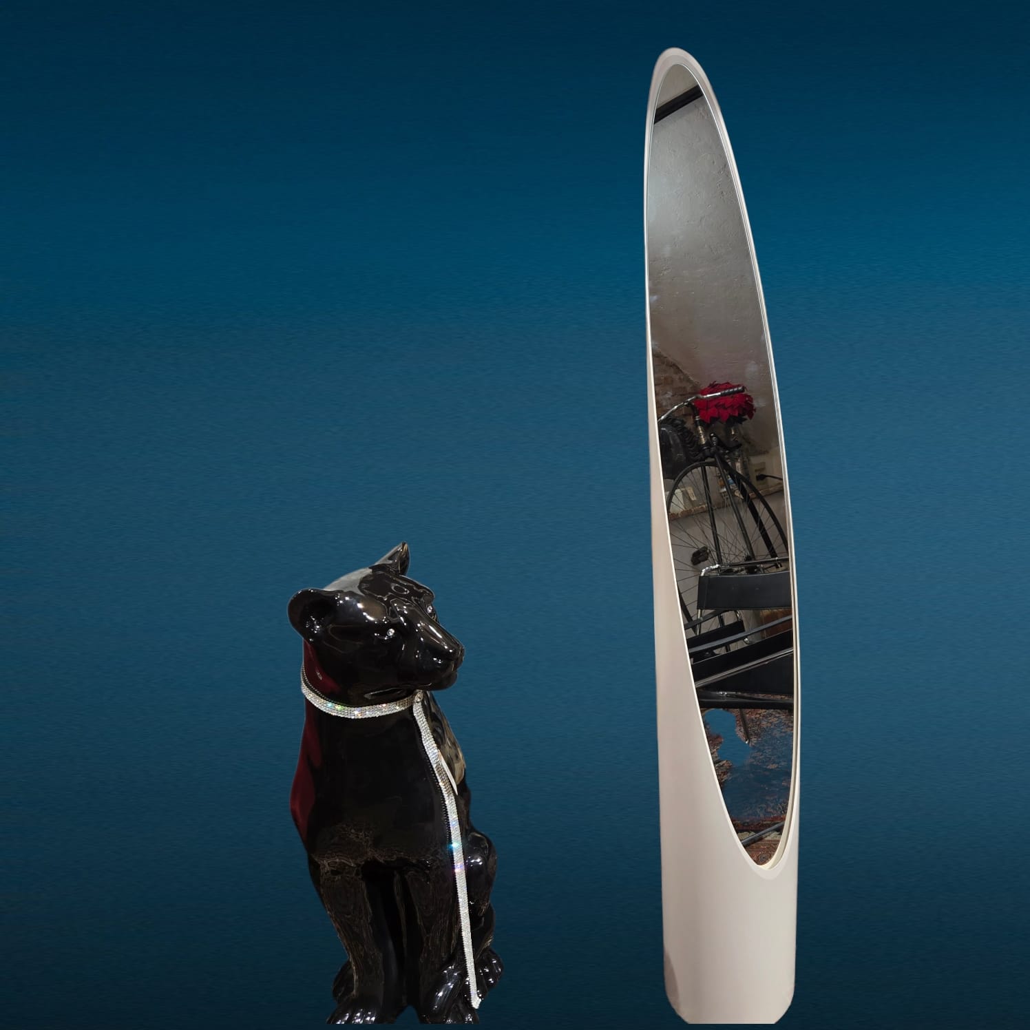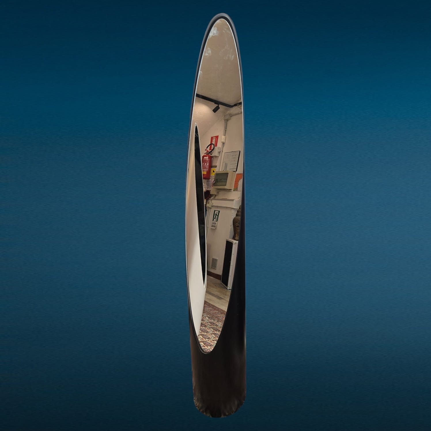 Lo specchio da terra ad unghia Lipstick rappresenta un elemento iconico del design italiano anni 70. La sua forma sagomata richiama la linea di un rossetto, da cui deriva il nome. Inoltre, la struttura slanciata lo rende adatto sia ad ambienti domestici sia a spazi commerciali.