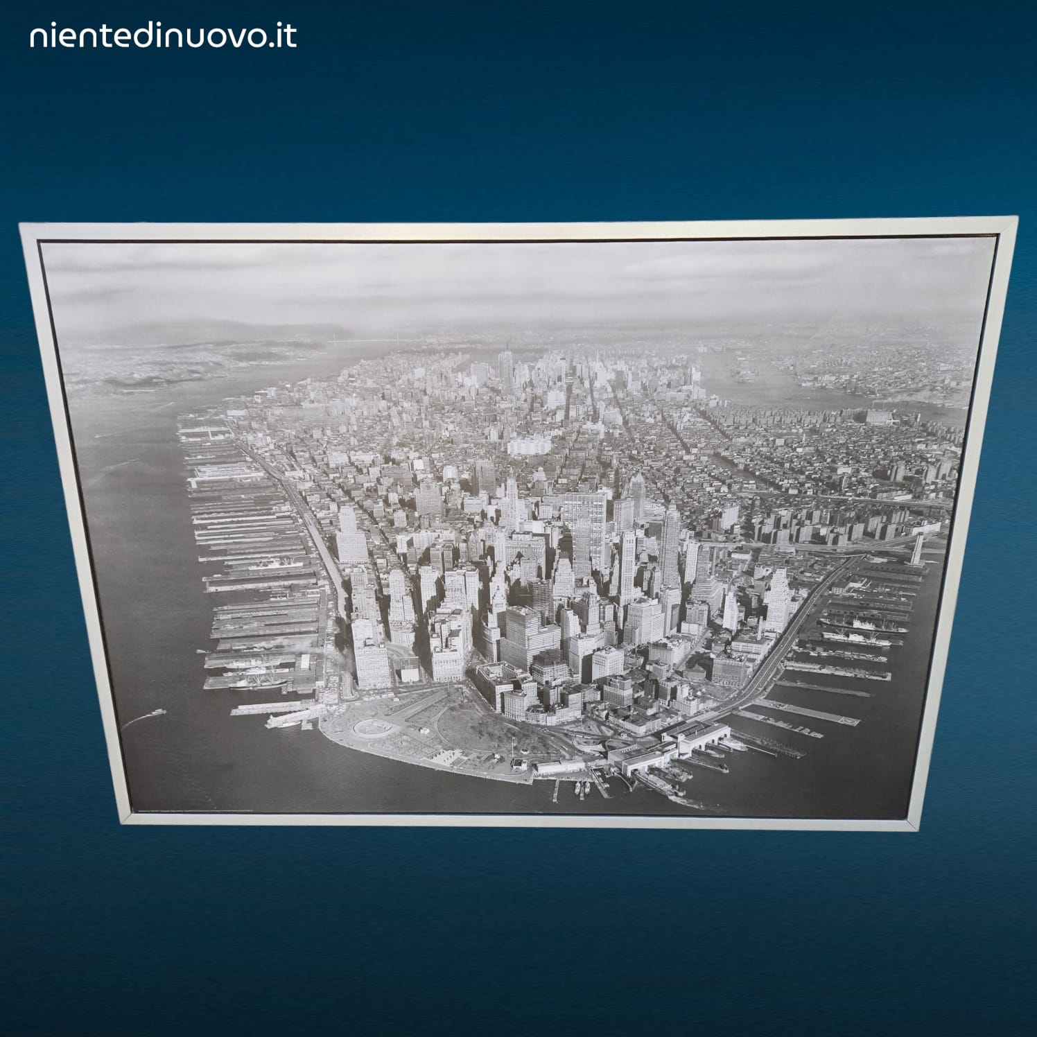 Questa stampa incorniciata Manhattan anni 30 propone una veduta aerea di New York che colpisce per taglio prospettico e forza documentaria. L’immagine mostra Manhattan dall’alto e restituisce con chiarezza il profilo della città in una fase storica centrale del Novecento. Per questo motivo, il quadro si inserisce bene sia in una collezione di fotografie decorative sia in un ambiente arredato con gusto vintage o industriale.