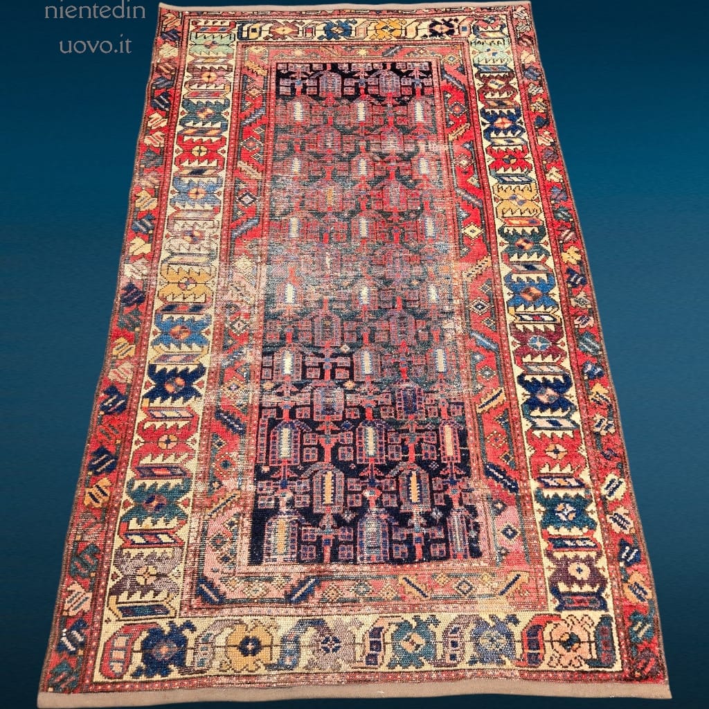 L’annodatura fine, i colori ancora vibranti e il disegno tradizionale ne fanno comunque un pezzo interessante, sia per arredare che per collezionare. È consigliato a chi ama il fascino del tempo e riconosce il valore di un manufatto autentico, anche se segnato dall’uso.