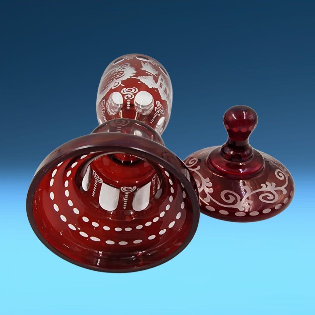 preziosa urna in cristallo rosso di Bohemia con coperchio in perfette condizioni