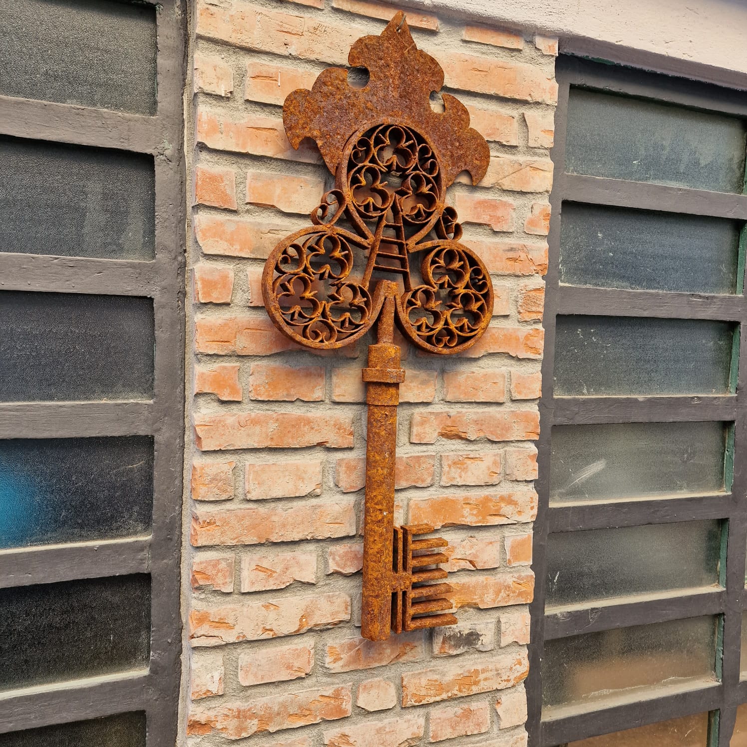 La chiave si distingue per la lavorazione robusta e per il suo aspetto materico. Il ferro, lasciato esposto agli agenti atmosferici, ha sviluppato una ruggine autentica che conferisce un effetto vintage molto apprezzato nel design d’interni ed esterni. Pur trattandosi di una riproduzione, ogni pezzo è unico grazie alle variazioni di colore e texture. La vecchia chiave in ferro da esterno diventa così un oggetto decorativo versatile, ideale anche per vetrine, allestimenti o installazioni artistiche.