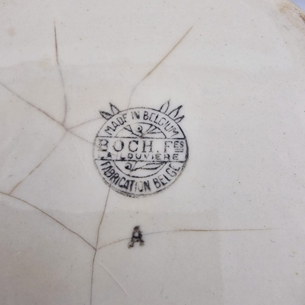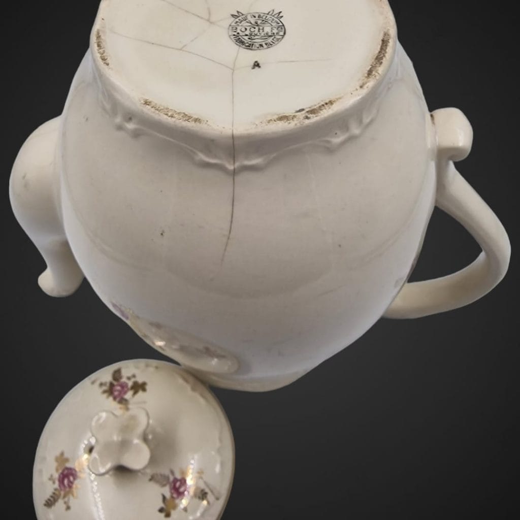 bella e vecchia originale teiera in ceramica belga marchiata BOCH Louviere con coperchio che evidenzia alcuni normali incrinature dovute al tempo come da immagini allegate