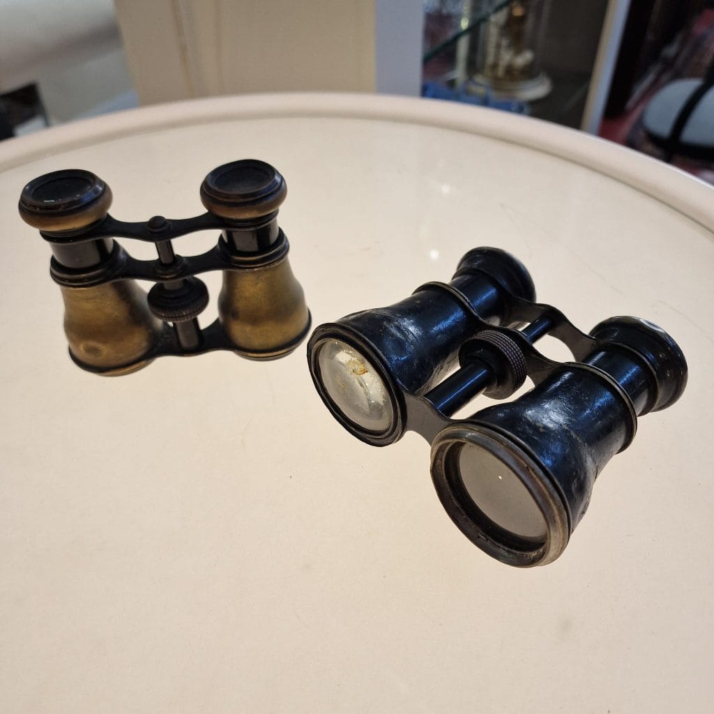 vecchio binocolo in ottone verniciato nero con segni del tempo