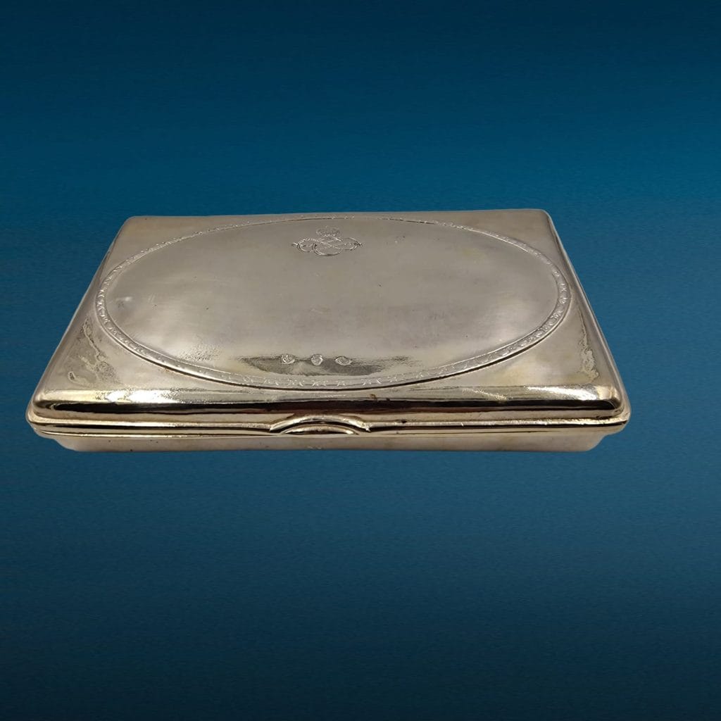 vecchio e prezioso portasigari in lega d’argento con lo storico marchio della storica compagnia di navigazione triestina Cosulic.