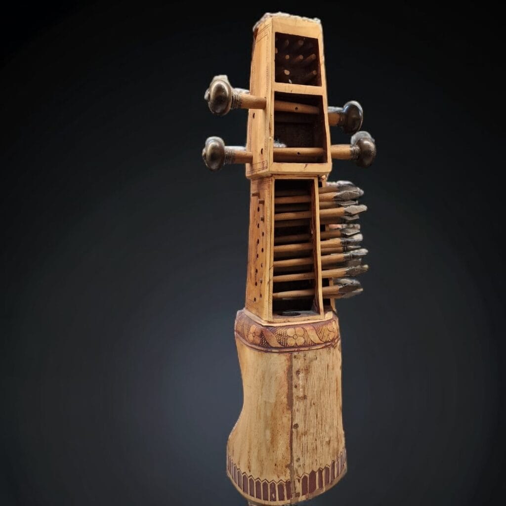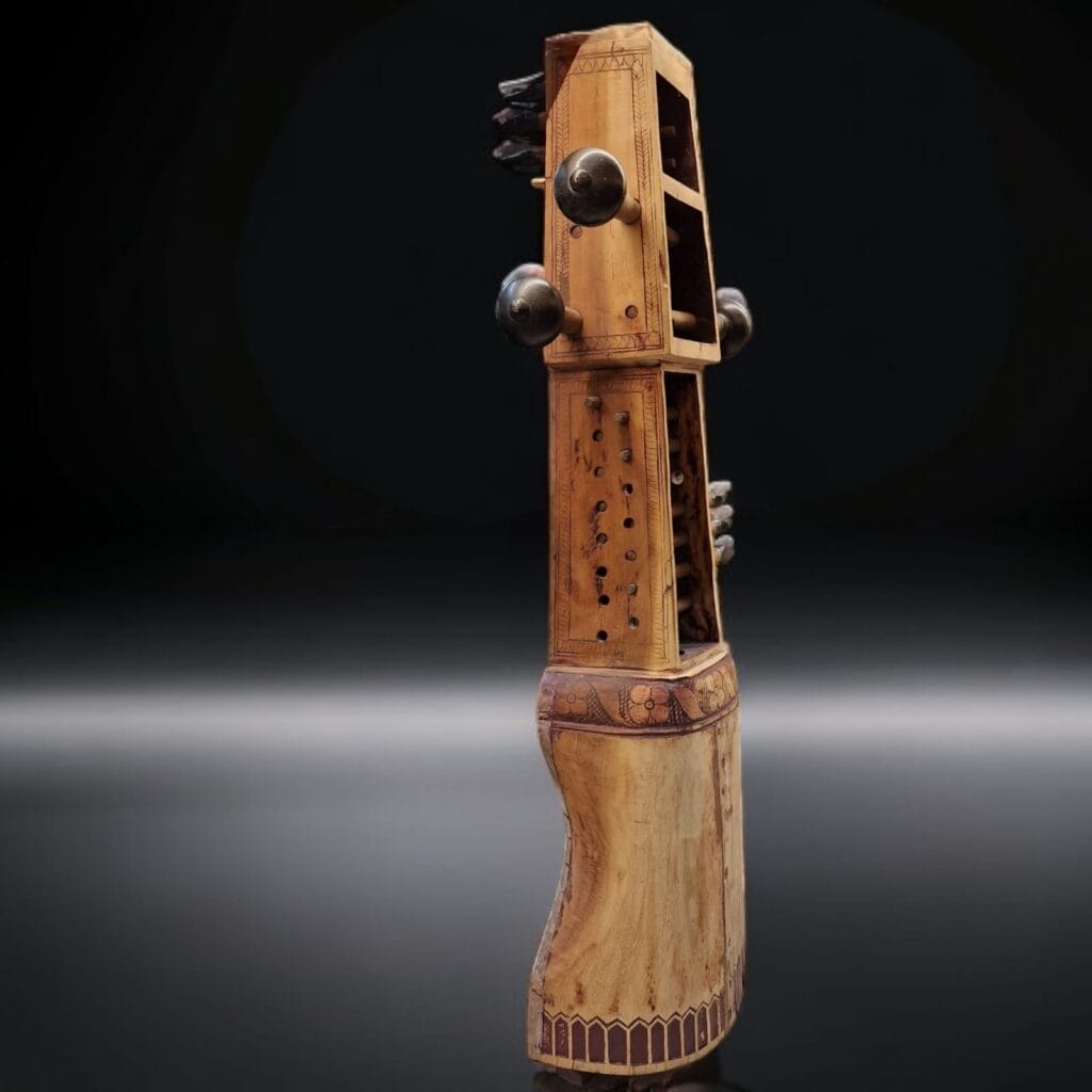 antico strumento musicale etnico realizzato a mano in completo, in quanto mancante di corde al momento, non siamo in grado di dare ulteriori informazioni, in quanto trattasi di oggetto” mai visto”